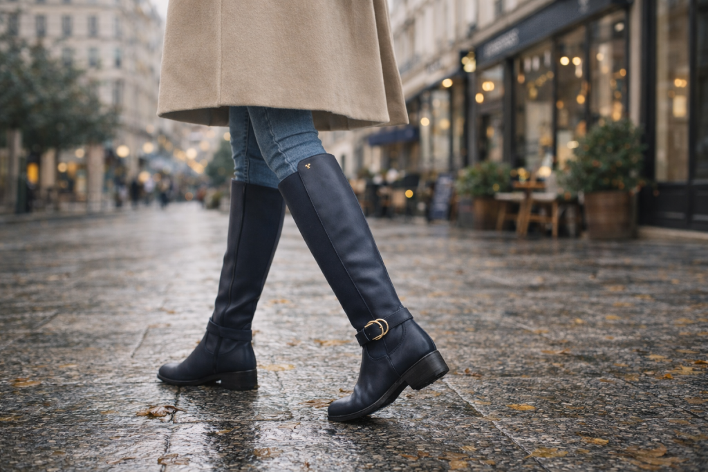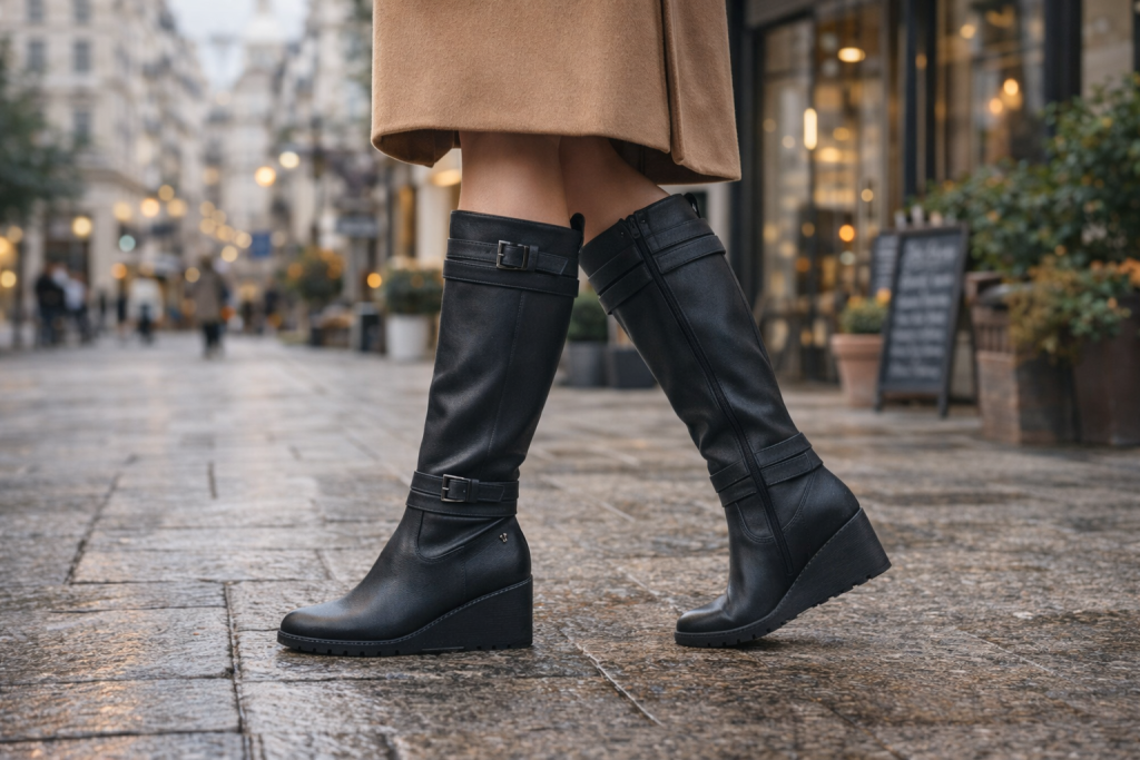 High boots look stunning with long coats, skirts, dresses, and fitted pants. They are perfect for days when you want your outfit to feel a little more dressed up and confident. They also make winter styling feel exciting instead of boring.