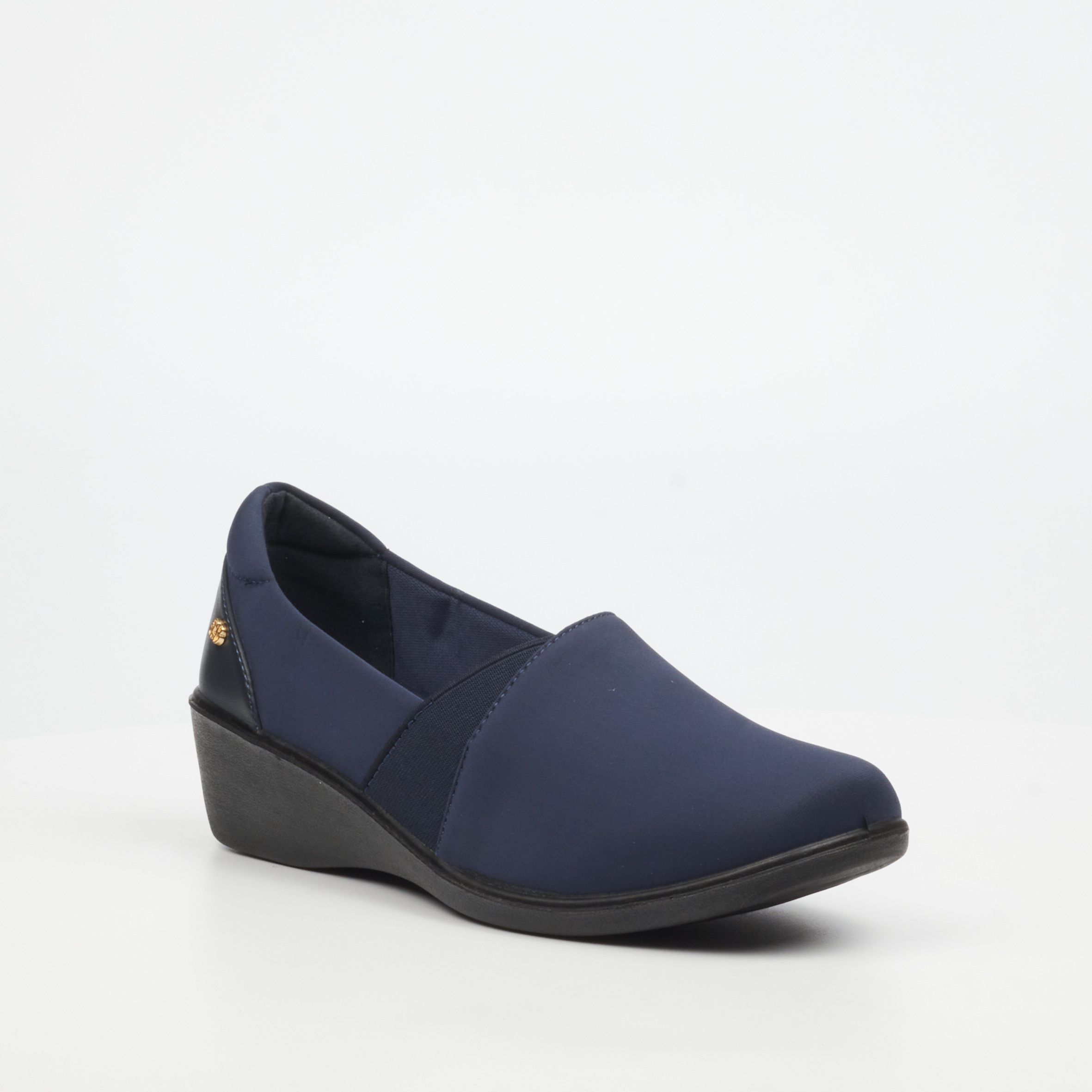 Key Features: Round Toe Elastic Contrast PU inset Slip On Comfort Sock