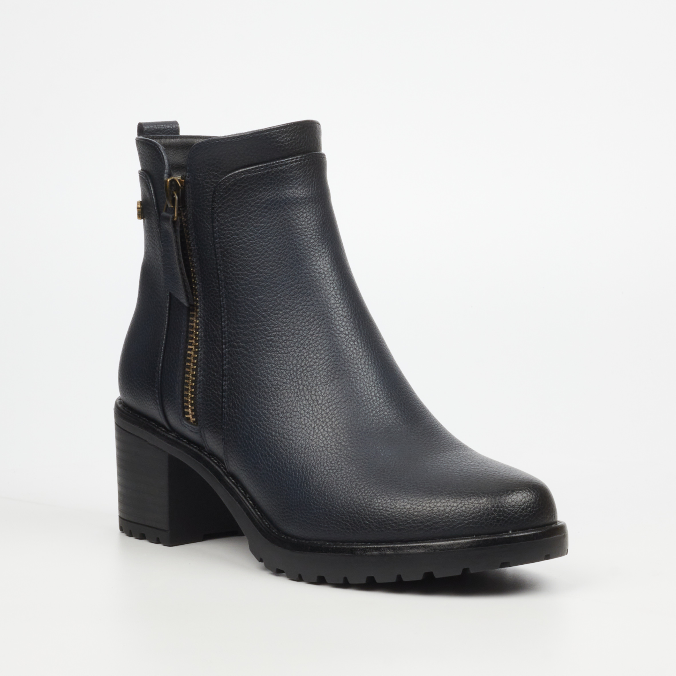 Key Features: Round Toe Metal Zip Trim Brushed Leather Zip Up Comfort sock